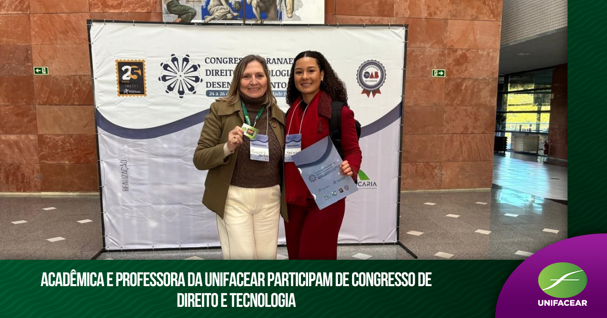 No dia 24 de junho a professora Me. Rosana Brittes e a Acadêmica de Direito Karoline Conde participaram do Congresso de Direito Paranaense de Direito e Tecnologia representando o Centro Universitário Unifacear.
