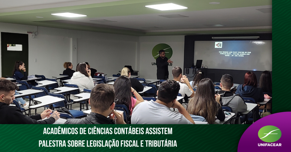 No dia 21 de agosto de 2023, os alunos dos últimos anos do curso de Ciências Contábeis da Unifacear, Campus Sítio Cercado, com a iniciativa do professor João Carlos Dornelles, tiveram a oportunidade de participar de uma palestra sobre "Legislação Fiscal e Tributária e seus reflexos na Contabilidade".