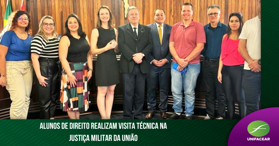 Em 23 de agosto de 2023, os alunos do curso de Direito da Unifacear - Curitiba, com a iniciativa e orientação da professora Amanda Viega Spaller, realizaram uma visita técnica na Justiça Militar da União, com sede em Curitiba.