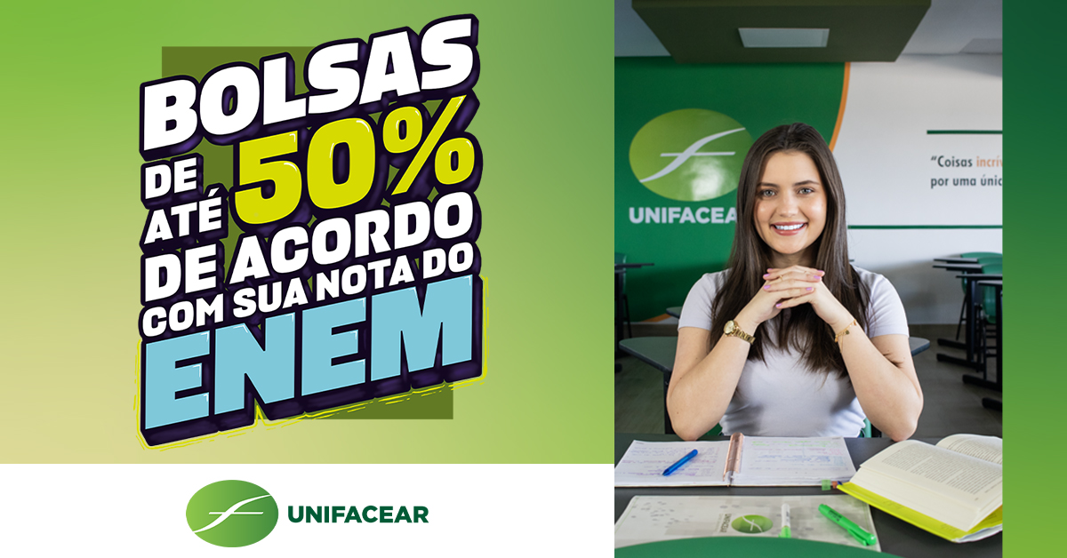 A Unifacear está com uma promoção imperdível para quem realizou a prova do ENEM 2023, onde estudantes terão descontos de até 50% nas mensalidades para todo o curso, seja ele presencial, semipresencial ou EAD.