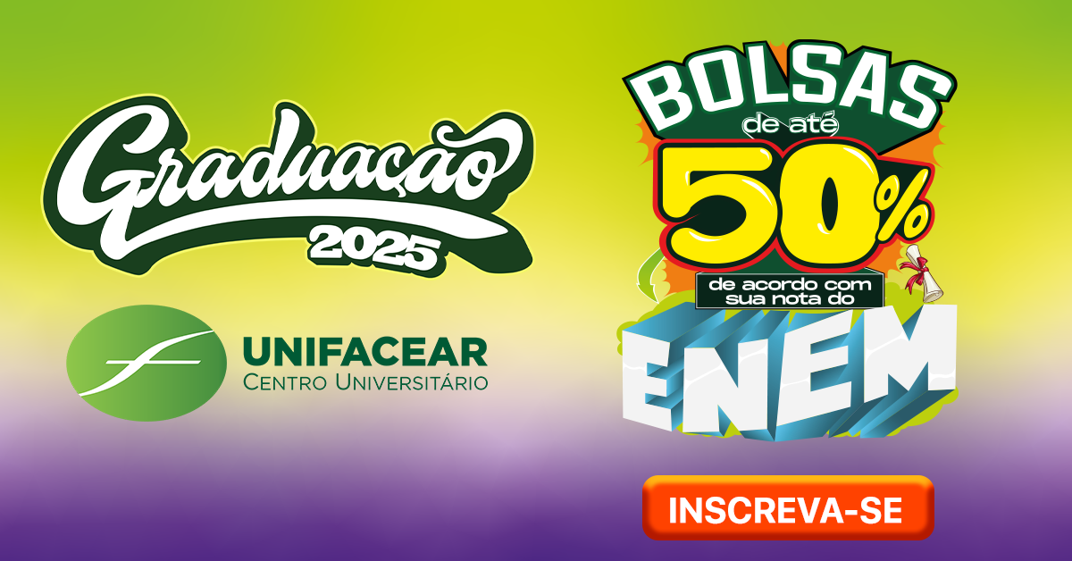 A Unifacear está com uma promoção imperdível para quem realizou a prova do ENEM 2024, onde estudantes terão descontos de até 50% nas mensalidades para todo o curso, seja ele presencial, semipresencial ou EAD.
