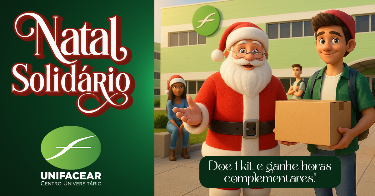 A Unifacear inicia mais uma ação solidária de fim de ano com o objetivo de proporcionar um Natal mais acolhedor e digno para crianças em situação de vulnerabilidade social e para famílias atendidas por instituições de apoio. A campanha busca arrecadar brinquedos novos ou em bom estado de conservação e alimentos não perecíveis, que serão destinados tanto às crianças quanto a entidades que trabalham no combate à fome.