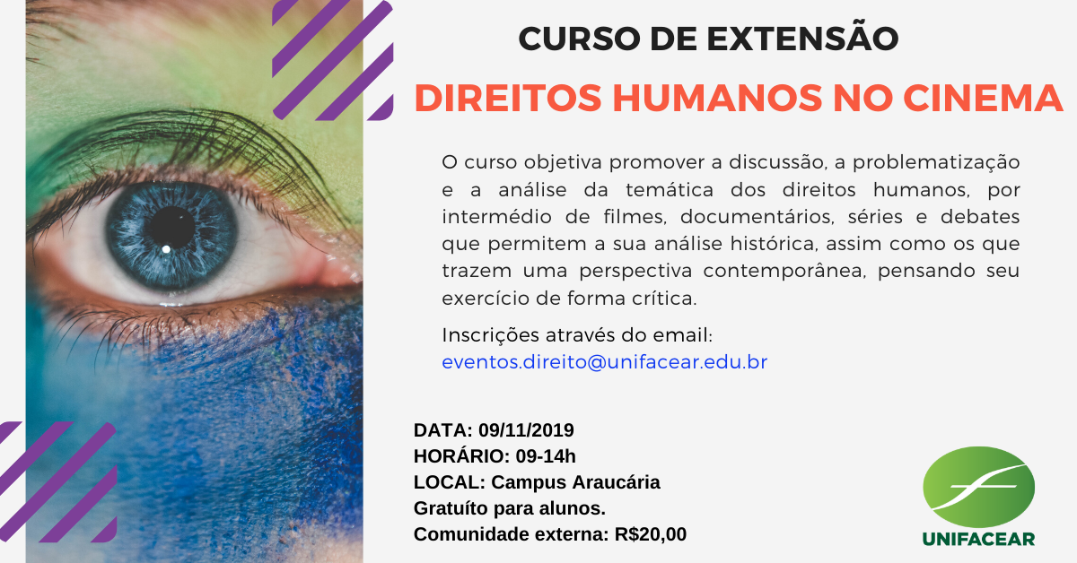 Objetivo: O curso objetiva promover a discussão, a problematização e a análise da temática dos direitos humanos, por intermédio de filmes, documentários, séries e debates que permitem a sua análise histórica, assim como os que trazem uma perspectiva contemporânea, pensando seu exercício de forma crítica.