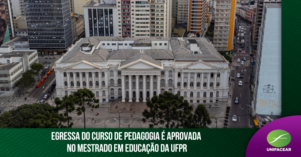 A egressa do curso de Pedagogia da Unifacear, Luana Carneiro Ferrari Holes, foi aprovada no Mestrado em Educação da Universidade Federal do Paraná (UFPR), na linha de pesquisa História e Historiografia da Educação. A conquista representa um importante passo em sua trajetória acadêmica e profissional, além de evidenciar a qualidade da formação oferecida pelo curso de Pedagogia da instituição.