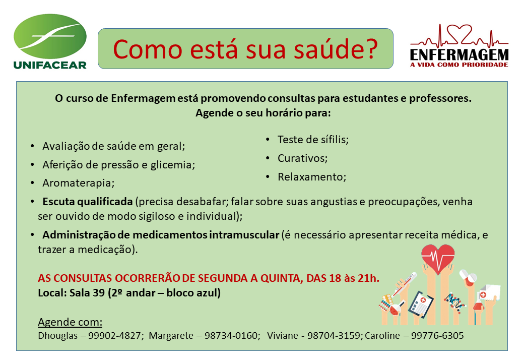 Como está a sua saúde? Quem faz essa pergunta são os alunos de Enfermagem a todos os alunos e funcionários da Unifacear.