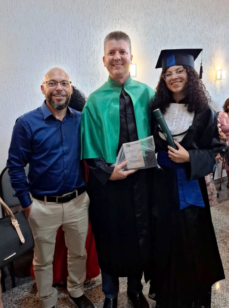 Esse encontro entre gerações, professor, ex-aluno (pai) e a nova profissional formada, emocionou todos os presentes. Ao final da cerimônia, o trio registrou uma foto que simboliza não apenas a conclusão de um ciclo, mas a continuidade de uma história construída com educação, dedicação e respeito.
