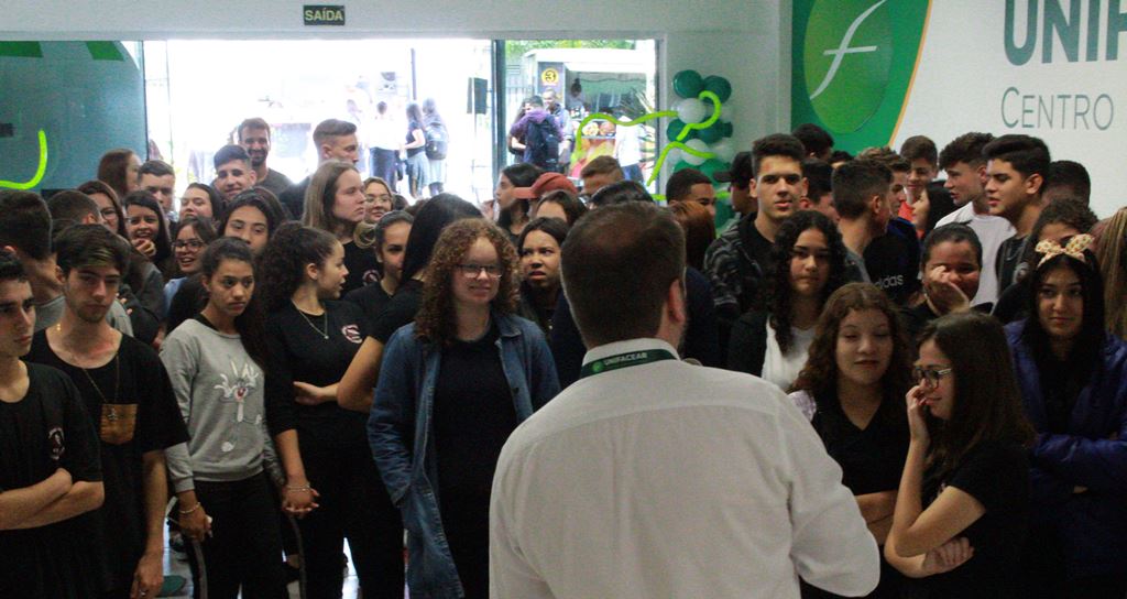 Os participantes foram recepcionados pelo Diretor do campus Renan Gabriel Wosniack, o qual apresentou a estrutura e logística do evento. Em seguida os alunos foram guiados para conhecer os stands dos cursos de Administração, Ciências Contábeis, Direito, Engenharia Civil, Engenharia de Produção, Engenharia Elétrica, Engenharia Mecânica, Gestão de RH, Logística, Pedagogia, Enfermagem, Biomedicina e Fisioterapia, além dos cursos EAD.