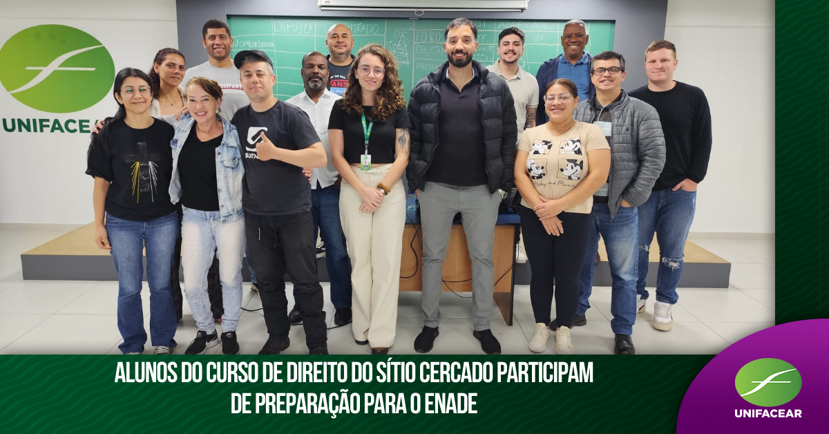 Em 2025, os acadêmicos do último período do curso de Direito precisam participar da nova edição do ENADE (Exame Nacional de Desempenho dos Estudantes). A prova aplicada nacionalmente avalia a performance dos alunos do ensino superior. Com isso, o campus Sítio Cercado iniciou uma programação repleta de eventos preparatórios para os universitários que participarão.