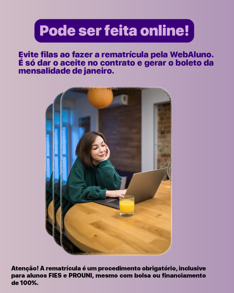 Informamos que as rematrículas para o primeiro semestre de 2026 já estão abertas e podem ser realizadas diretamente no portal WebAluno.