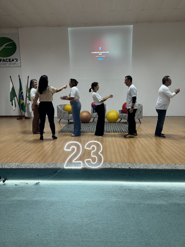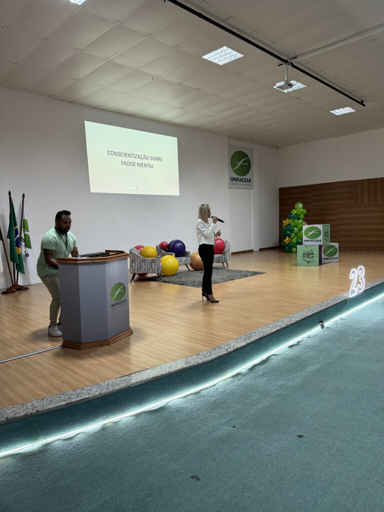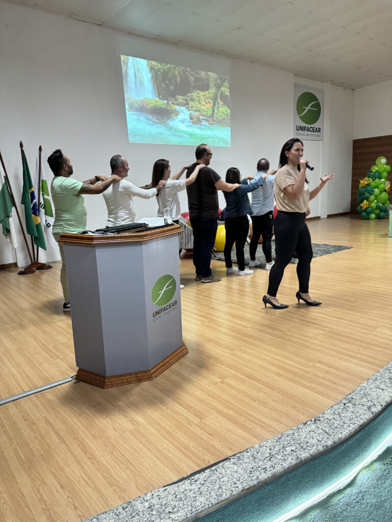 Além das atividades festivas, o evento contou com uma palestra inspiradora sobre saúde mental, destacando a importância do bem-estar emocional no ambiente de trabalho e na vida pessoal. A iniciativa reforçou o compromisso da Unifacear com a qualidade de vida de seus colaboradores. Houve também uma dinâmica de ginástica laboral, proporcionando momentos de descontração e incentivo ao cuidado com a saúde física.