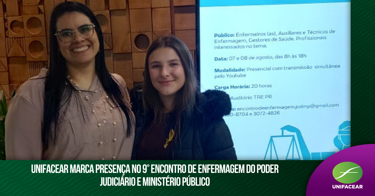 Na sexta-feira (8), a Unifacear esteve representada no “9° Encontro de Enfermagem do Poder Judiciário e Ministério Público”, realizado no Tribunal Regional Eleitoral do Paraná (TRE-PR), em Curitiba. O evento reuniu profissionais e gestores de saúde, magistrados e servidores de todo o país para debater avanços na integração das equipes e fortalecer práticas multiprofissionais na área da saúde.