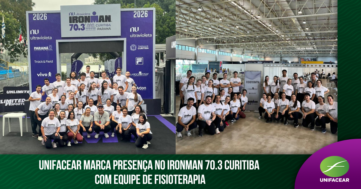 A professora do curso de Fisioterapia da Unifacear, Regina Moreira, participou juntamente com 45 acadêmicos e egressos do curso de fisioterapia da Unifacear junto da equipe de fisioterapia do Ironman 70.3 Curitiba, uma das provas mais desafiadoras do triathlon mundial, ao lado de um grupo muito especial: alunos e ex-alunos do próprio curso de Fisioterapia da instituição.