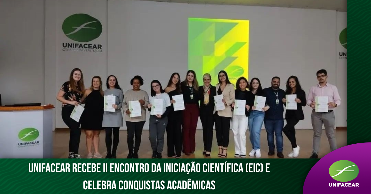 No dia 7 de março, o auditório da Unifacear Campus Araucária foi palco do II Encontro da Iniciação Científica (EIC), marcando o encerramento das atividades referentes ao ano de 2023. O evento, que reuniu alunos, orientadores e membros da comunidade acadêmica, destacou-se pela apresentação dos projetos desenvolvidos nas áreas de saúde, direito e tecnologia, bem como pela palestra proferida pelo professor Jaisson Agne Estrázulas.