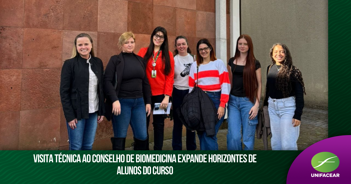 Aprofundar o conhecimento profissional e das normas que regem a área é fundamental durante a graduação. No sentido de contribuir para isso, os alunos do curso de Biomedicina da unidade Sítio Cercado da Unifacear participaram de uma visita técnica ao Conselho de Biomedicina do Paraná, em Curitiba. A iniciativa possibilitou uma vivência prática de como é a atuação do órgão que fiscaliza e representa a profissão.