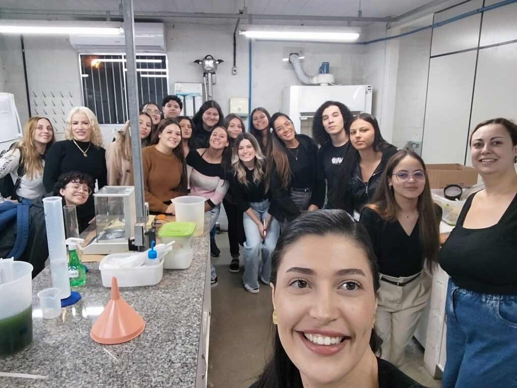 A atividade teve como principal objetivo proporcionar aos estudantes a oportunidade de conhecer de perto as instalações e os equipamentos utilizados no cultivo de microalgas, além de ampliar o entendimento sobre suas propriedades biológicas e bioquímicas. Durante a visita, os alunos puderam observar as diferentes etapas do processo de cultivo, os métodos de controle de crescimento e a importância das microalgas em pesquisas científicas e aplicações biotecnológicas.