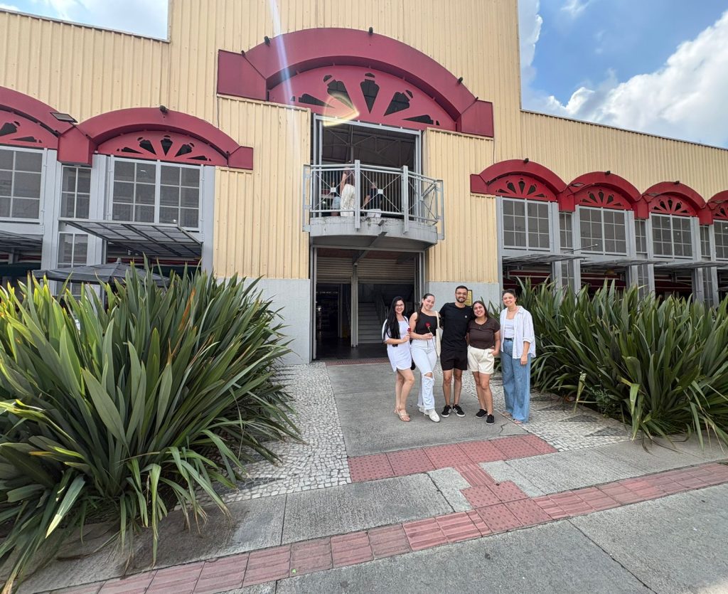 Durante a visita, os alunos puderam observar aspectos fundamentais do funcionamento de um mercado municipal, como a organização dos setores comerciais, os fluxos de circulação, acessos, áreas de carga e descarga, espaços gastronômicos e áreas de permanência, além da relação do edifício com o entorno urbano e sua integração com a dinâmica da cidade. O mercado foi utilizado como estudo de caso para o desenvolvimento do projeto da disciplina, no qual os estudantes irão propor um Mercado Municipal para o município de Araucária, integrado a espaços públicos de convivência e áreas verdes, refletindo sobre temas como escala, setorização, diversidade de usos, conforto ambiental e experiência do usuário.